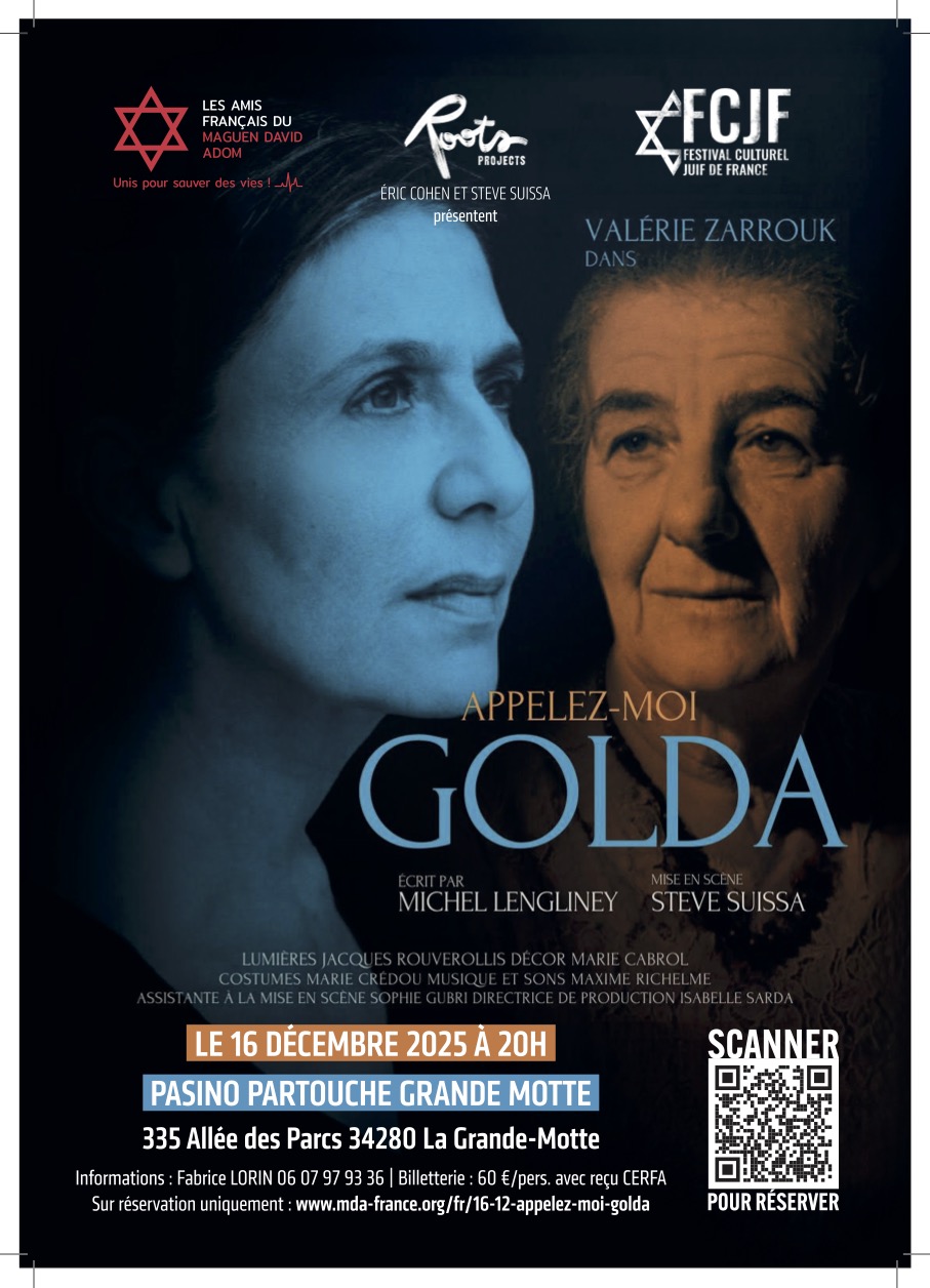 À cette occasion sera présentée la pièce « Appelez-moi Golda », mise en scène par Steve Suissa, en hommage à la grande figure de Golda Meir.